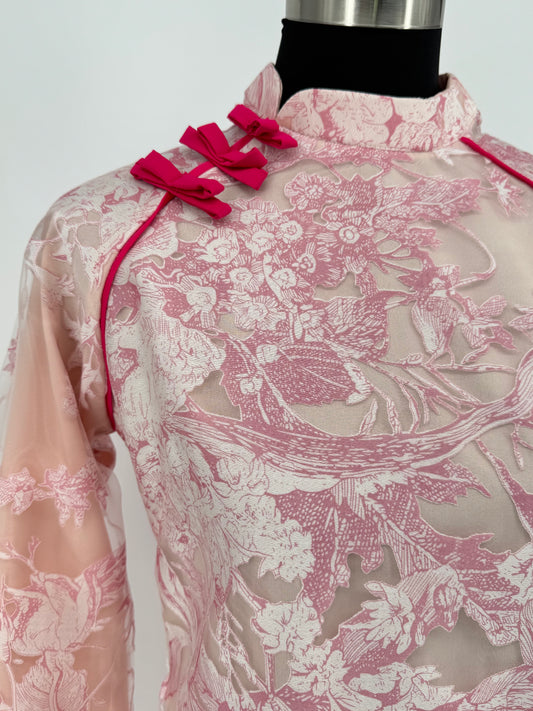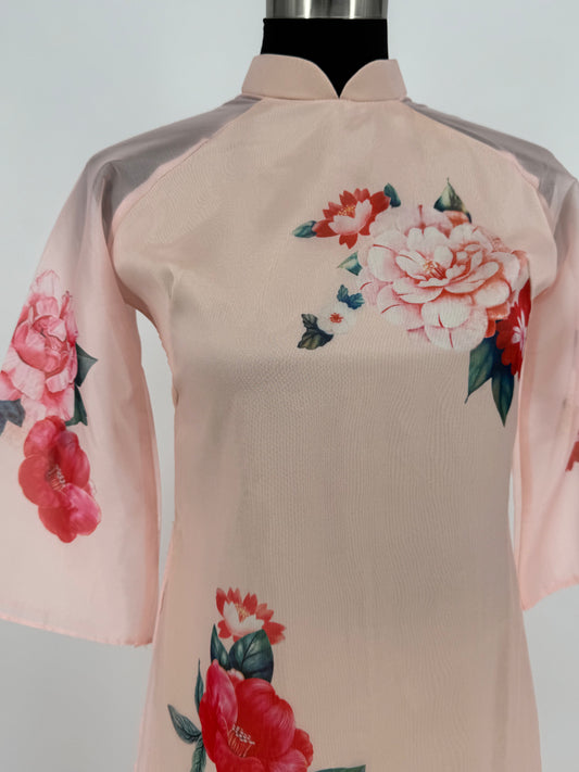 Áo (Không quần) | Áo Dài Nữ Hồng Vải Gấm và Ren Sang Trọng Cho Dịp Đặc Biệt | BA252