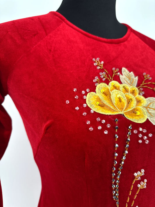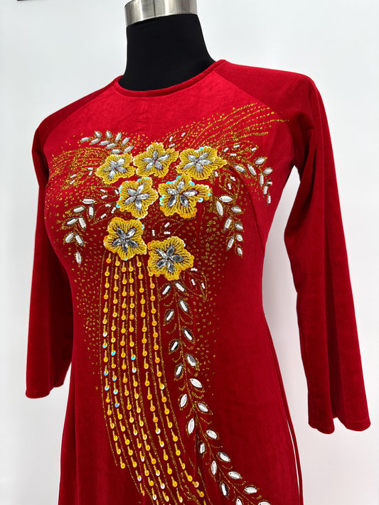 Áo (Không quần) | Áo Dài Nữ Dạ Hội Vải Nhung, Kết Cườm Sang Trọng | BA316