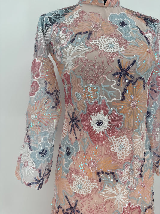 Áo (Không quần) | Áo Dài Nữ Ren Sequin 4 Tà Dạ Hội – Sang Trọng, Đổi Mới | BA384