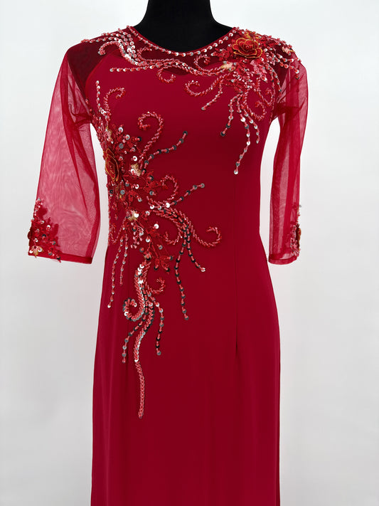 Áo (Không quần) | Áo Dài Nữ Dạ Hội Đỏ Sang Trọng - Vải Thun Nhũ Êm Ái | BA497