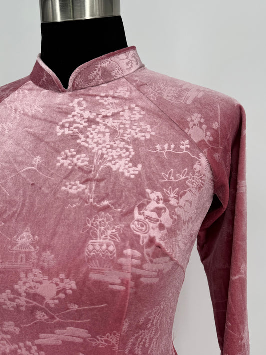 Áo (Không quần) | Áo Dài Nữ Hồng Vải Nhung Sang Trọng, Tôn Dáng | BA264
