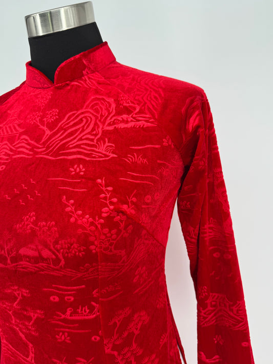 Áo (Không quần) | Áo Dài Nữ Đỏ Vải Nhung - Tôn Vinh Vẻ Đẹp Truyền Thống | BA263
