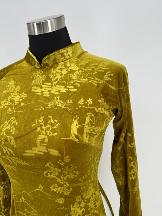 Áo (Không quần) | Áo Dài Nữ Vải Nhung Vàng - Vẻ Đẹp Sang Trọng Thời Thượng | BA265