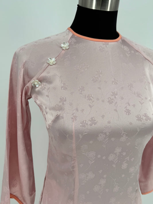 Áo (Không quần) | Váy Áo Dài Nữ Hồng Bằng Vải Gấm, Sang Trọng và Thanh Lịch | BA249