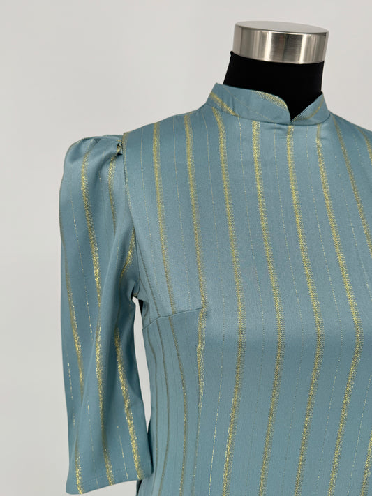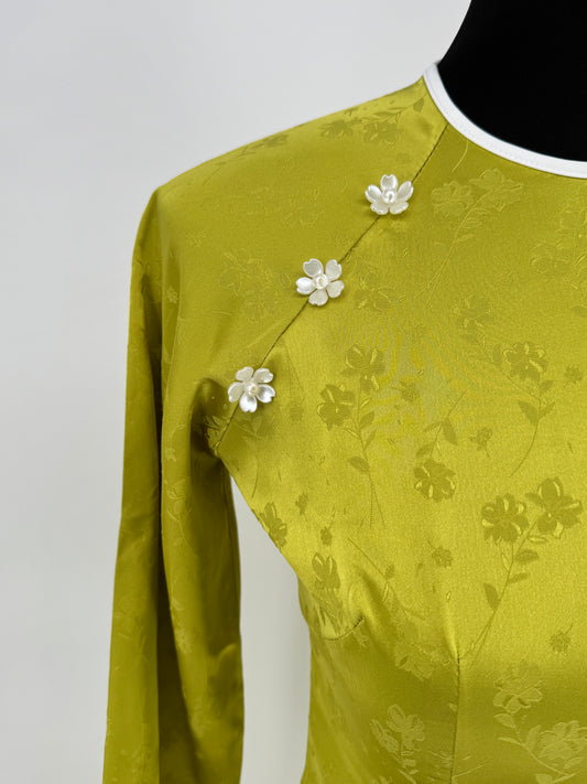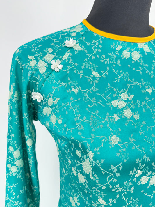 Áo (Không quần) | Áo Dài Nữ Xanh Vải Gấm Sang Trọng cho Dịp Lễ | BA241