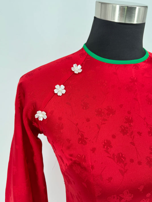 Áo (Không quần) | Áo Dài Nữ Đỏ Vải Gấm Dành Cho Ngày Lễ Hội | BA251