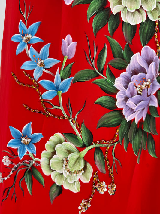 Áo + Quần | Áo Dài Nữ Đỏ Thêu Tay Sang Trọng, Vải Lụa Cao Cấp | BA105