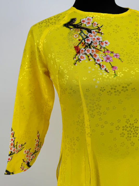 Áo + Quần | Áo Dài Nữ Vàng Gấm Hoa Đào - Dáng Thanh Lịch | BA071