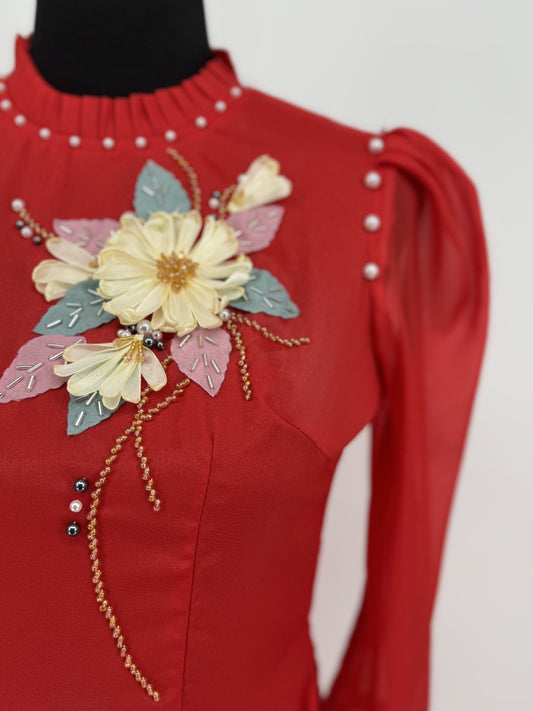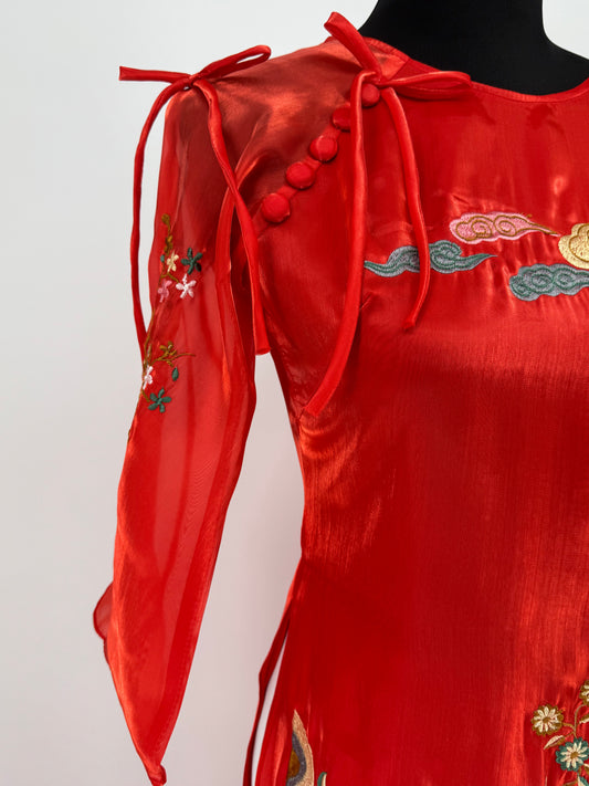 Áo + Quần | Áo Dài Nữ Đỏ, Đính Nơ, Kết Cườm, Thêu Sang Trọng | BA088