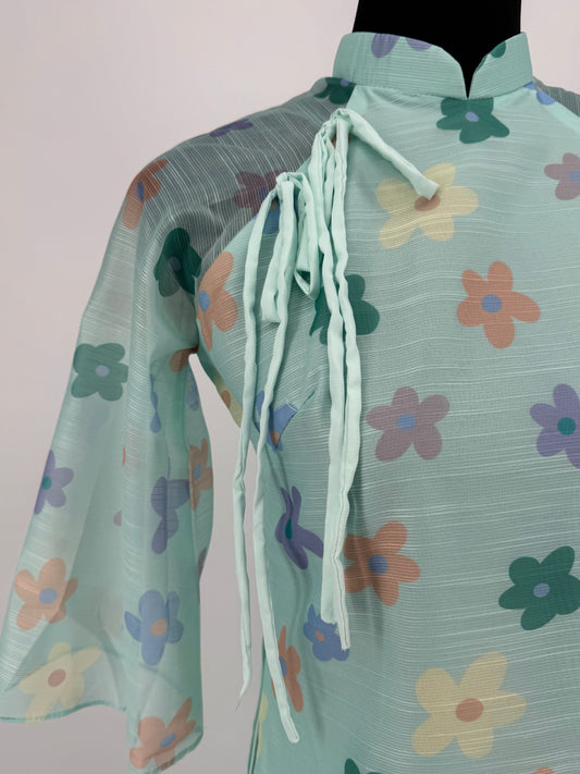 Áo + Quần | Áo Dài Nữ Xanh Đính Nơ - Thời Trang Sang Trọng và Đẹp | BA059