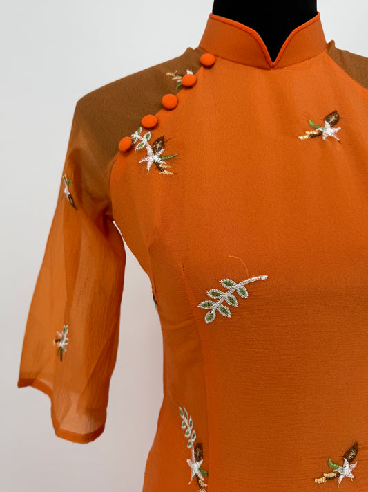 Áo + Quần | Áo Dài Nữ Cam Thêu Cao Cấp - Phong Cách Thanh Lịch | BA067