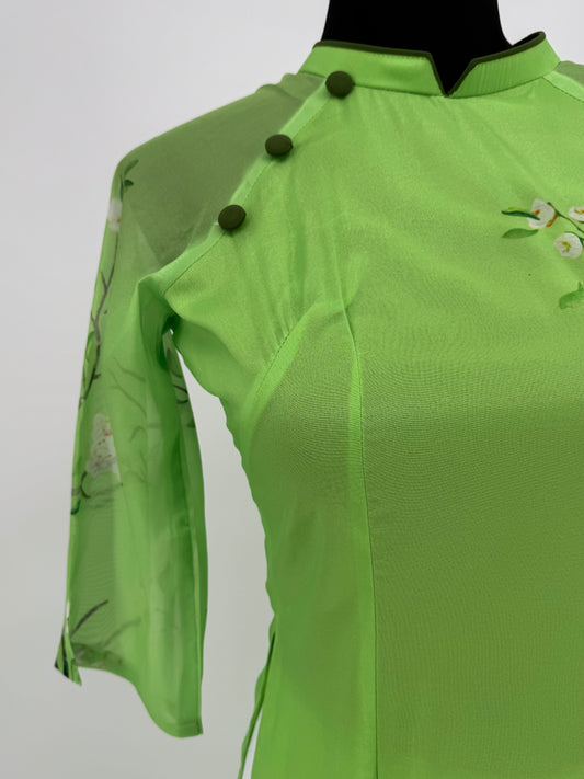 Áo + Quần | Áo Dài Nữ Thêu Xanh - Vải Lụa, Vải Voan Sang Trọng | BA062