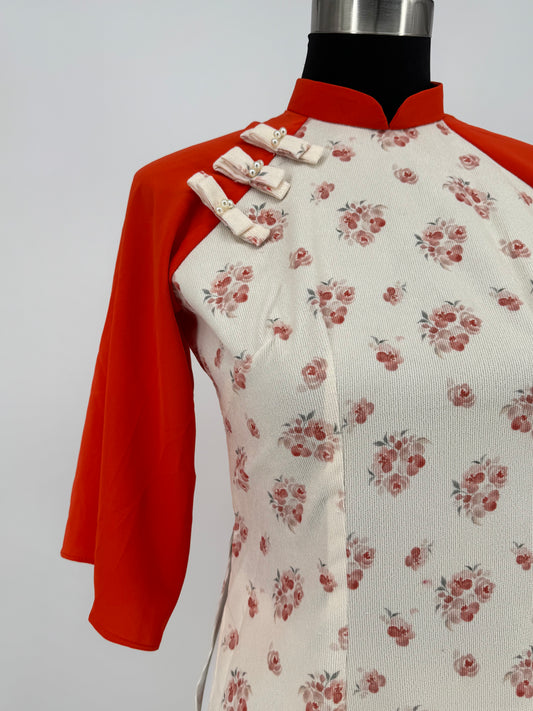 Áo + Quần | Áo Dài Nữ Cam Đính Nơ - Sang Trọng và Thanh Lịch | BA063