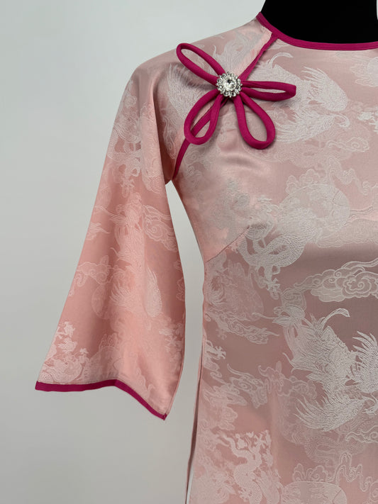 Áo + Quần | Áo Dài Nữ Hồng Vải Gấm Đính Nơ Sang Trọng Đẹp Mắt | BA072