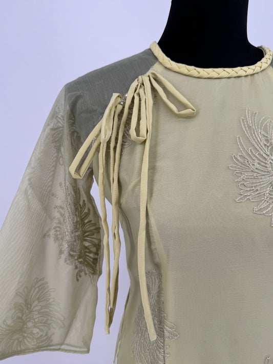 Áo + Quần | Áo Dài Nữ Vàng Đính Nơ - Vải Lụa & Vải Voan Sang Trọng | BA060