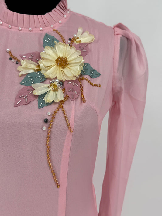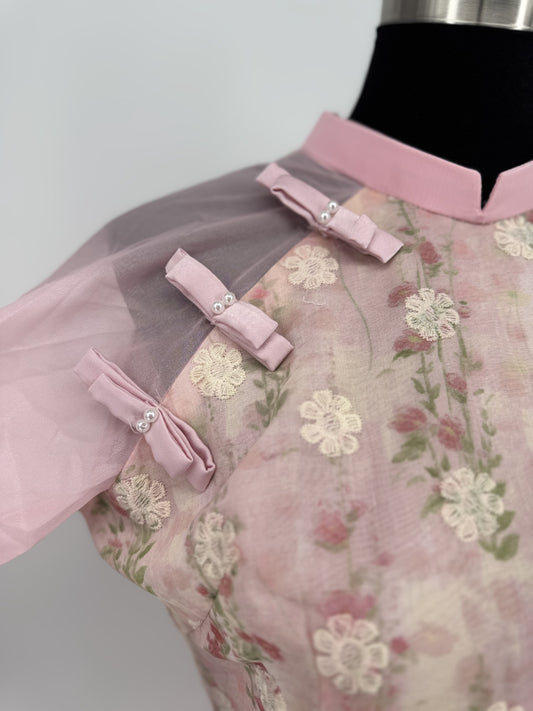 Áo + Quần | Áo Dài Nữ Hồng Đính Nơ & Kết Cườm – Vải Chiffon & Lụa | BA032