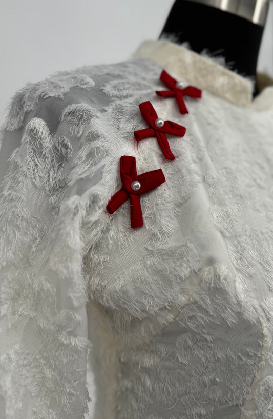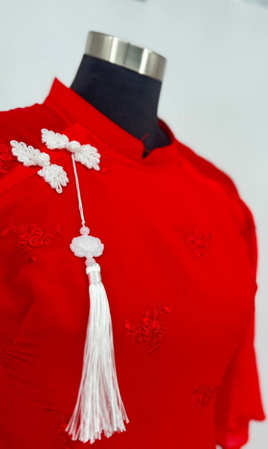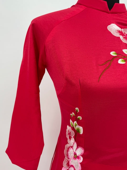 Áo + Quần | Áo Dài Nữ Đỏ Thêu Tinh Tế với Đính Nơ Sang Trọng | BA038