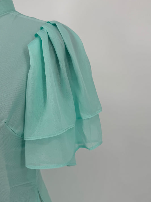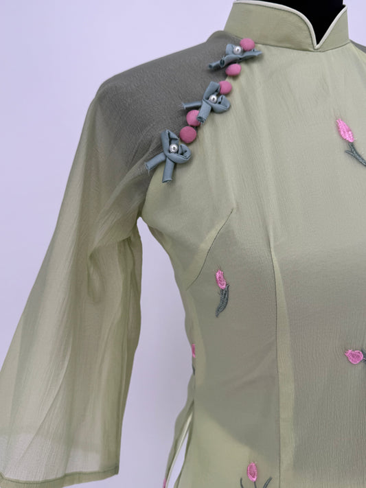 Áo + Quần | Áo Dài Nữ Xanh Đính Nơ, Thêu Tinh Tế - Vải Chiffon, Lụa | BA041