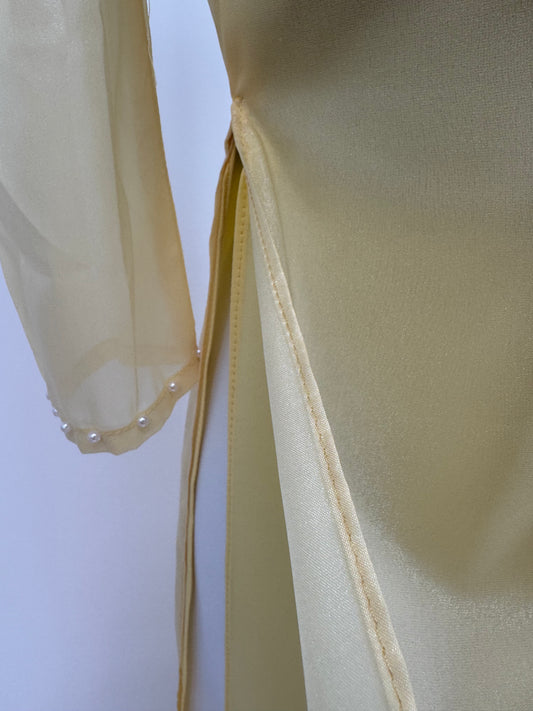 Áo + Quần | Áo Dài Nữ Vàng Đính Nơ - Sang Trọng và Thanh Lịch | BA029