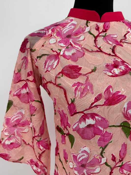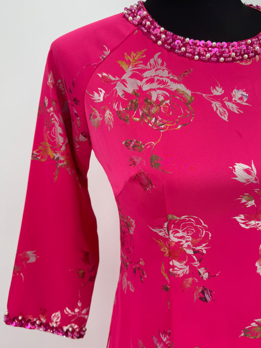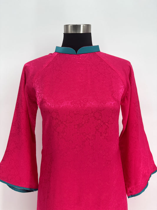 Áo + Quần | Áo Dài Nữ Hồng Sang Trọng, Cổ Tròn, Tay Lửng, Vải Gấm | BA011