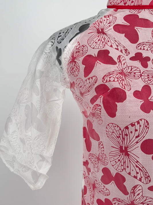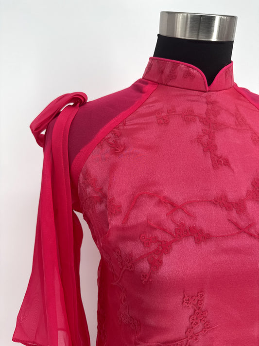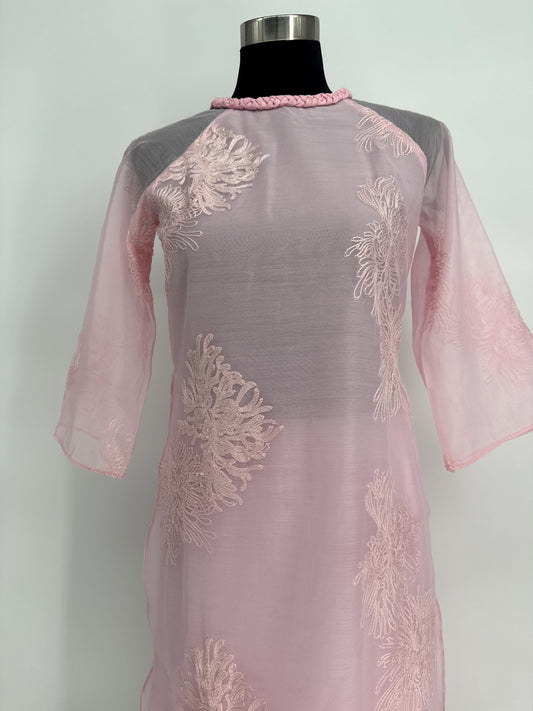 Áo + Quần | Áo Dài Nữ Hồng Đính Nơ, Vải Lụa & Voan Cao Cấp | BA023