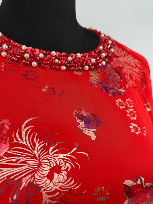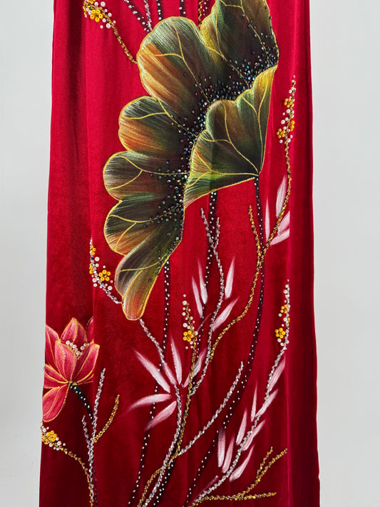 Áo + Quần | Áo Dài Nữ Đỏ Kết Cườm, Vẽ Tay Sang Trọng Tuyệt Đẹp | BA015