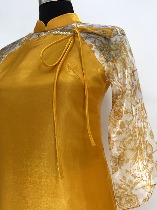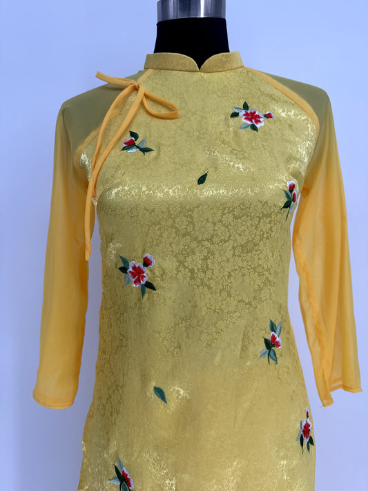 Áo + Quần | Áo Dài Nữ Vải Gấm & Voan Cho Mẹ Con - Vàng Rực Rỡ | BA470