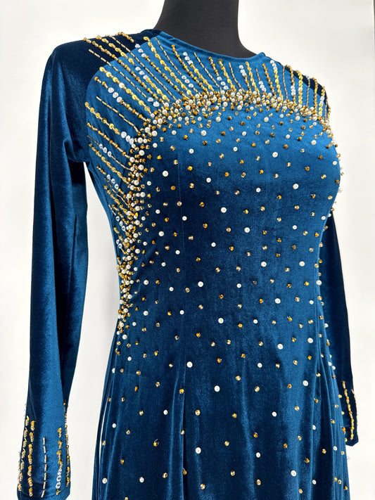 Shirt (No Pants) | Women's Velvet Evening Dress, Luxurious Embroidery and Rhinestones | BA320