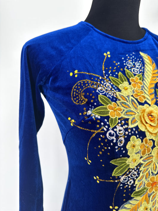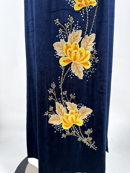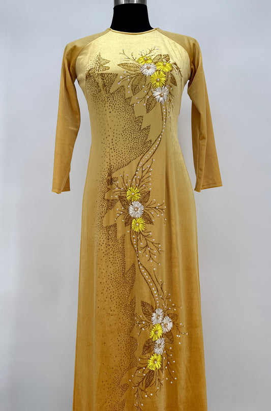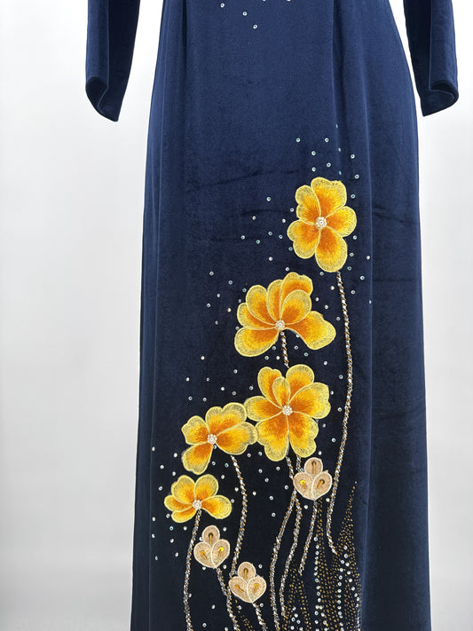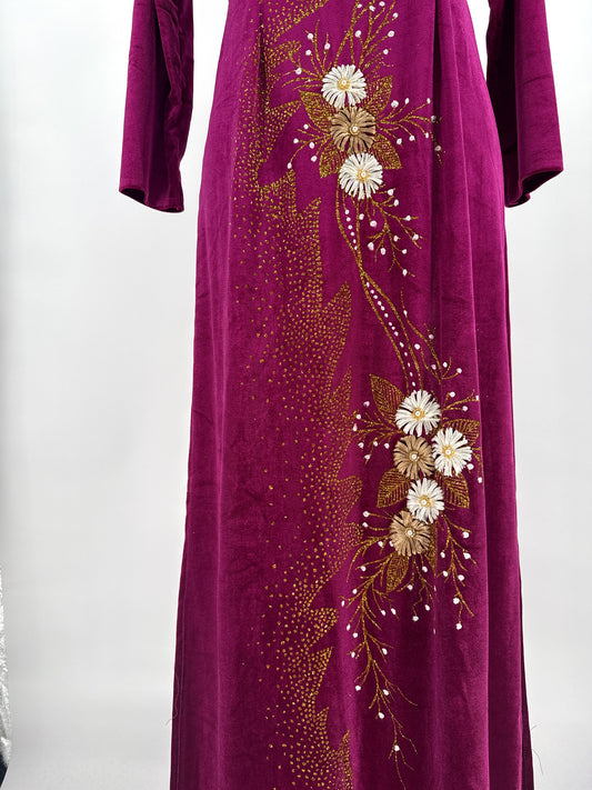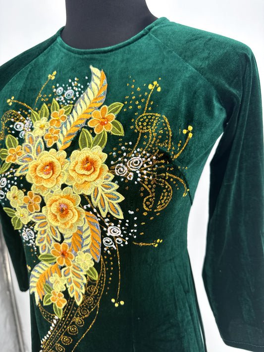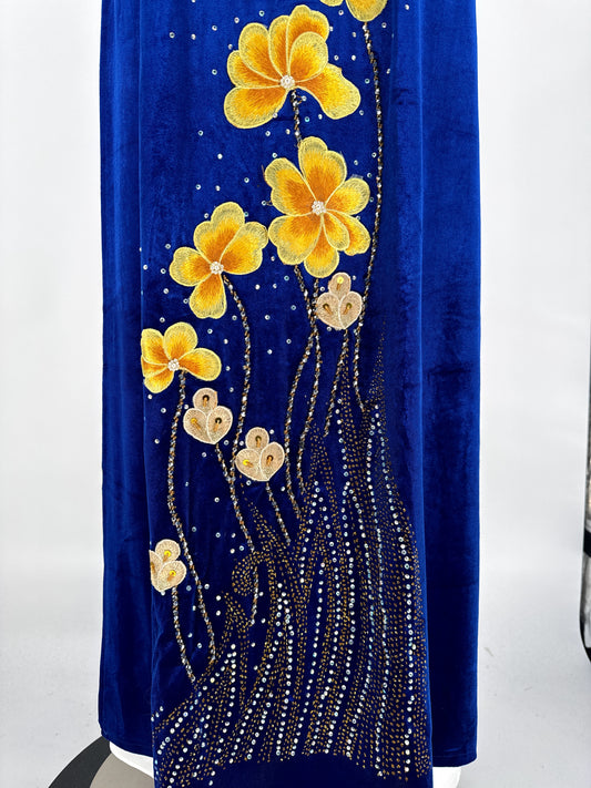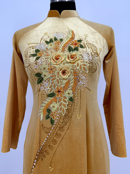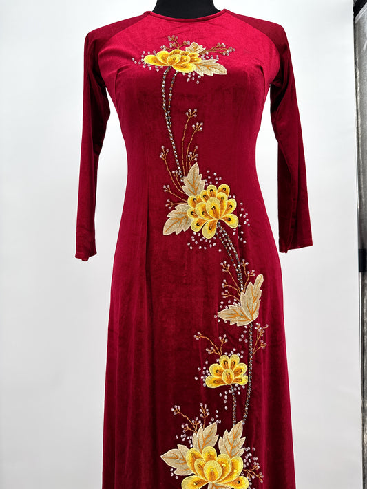 Shirt (No Pants) | Women's Velvet Ao Dai with Embroidered Flowers, Luxurious Evening Dress | BA323
