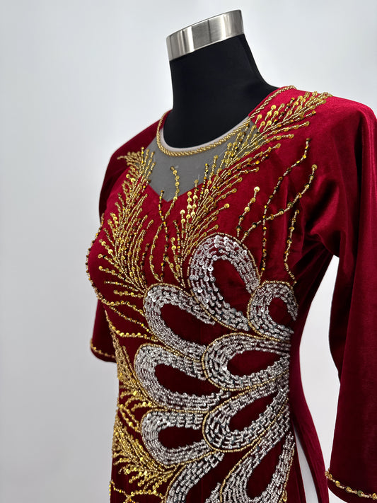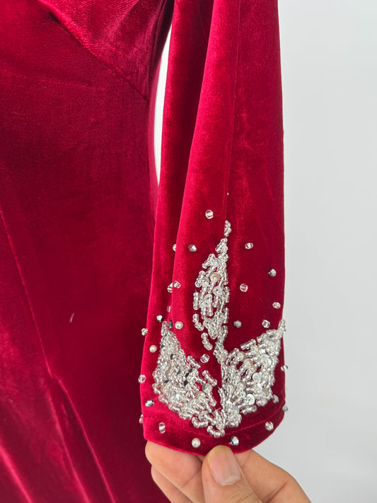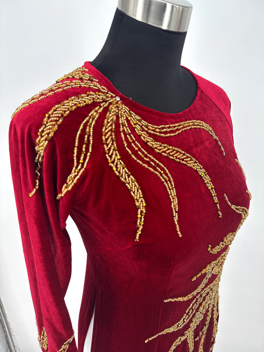 Shirt (No Pants) | Red Velvet Evening Dress for Women - Luxurious Beading | BA310