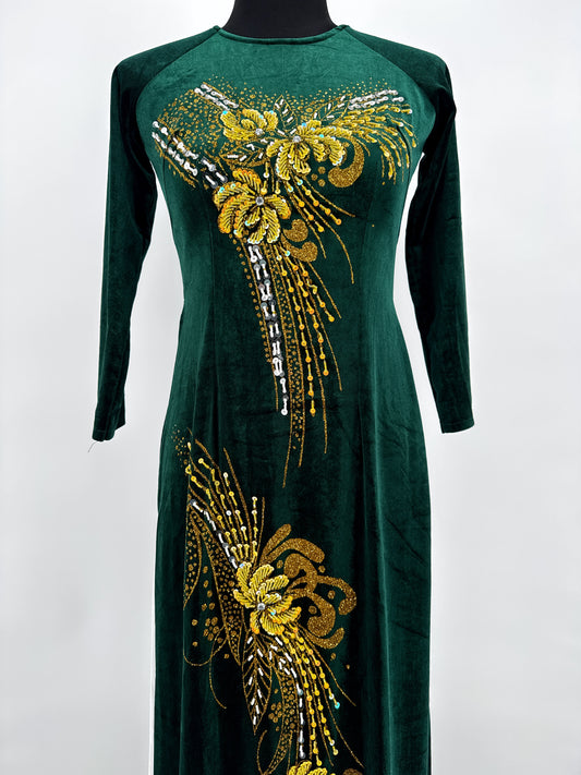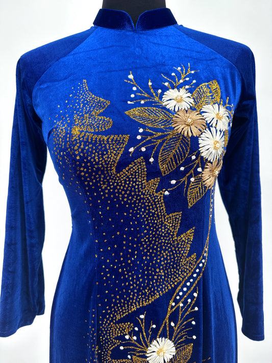 Shirt (No Pants) | Luxurious Velvet Ao Dai for Women with Rhinestones for Evening Party | BA337