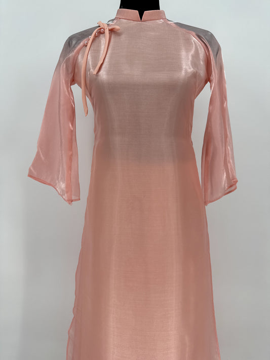 Shirt (No Pants) | Women's Modern Ao Dai - Silk & Chiffon 4 Panels, Light Pink | BA396