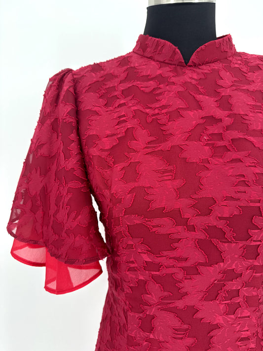Shirt (No Pants) | Luxurious Red Velvet Women's Ao Dai, Suitable for Evening Parties | BA312