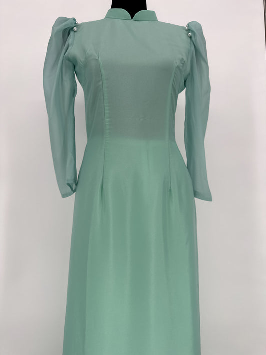 Shirt (No Pants) | Women's Ao Dai with 4 Panels, Turquoise Color, Silk, Chiffon | BA405