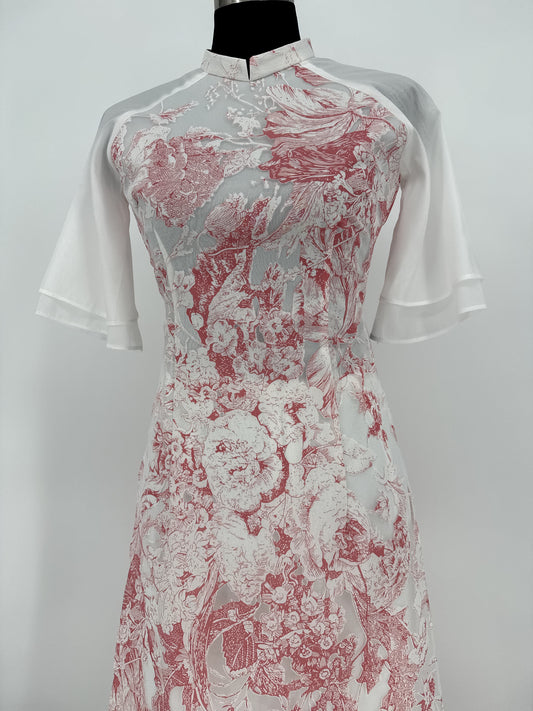 Shirt (No Pants) | Women's Ao Dai with 4 Panels, Embroidery, Silk & Chiffon | BA395