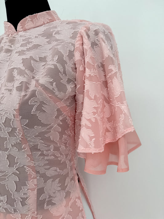 Top (No Pants) | Luxurious Pink Chiffon Lace Ao Dai for Women Suitable for Weddings | BA399