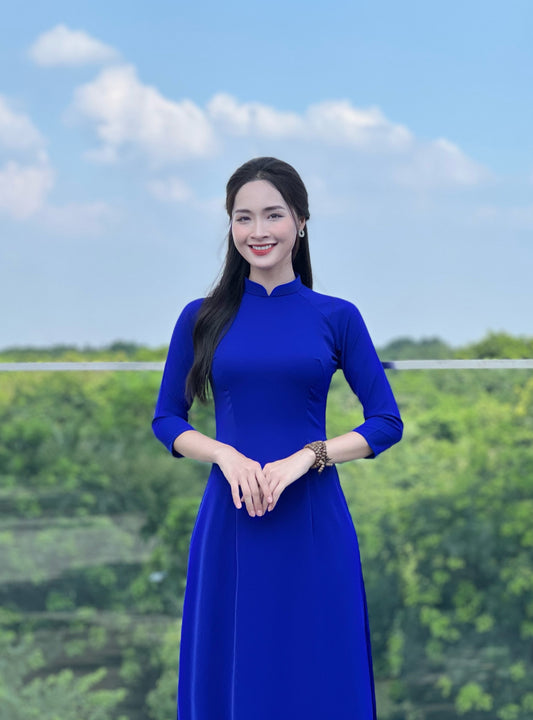 Beautiful Purple Ao Dai for Women - Round Neck, Bodycon, Luxurious Half Sleeves | BA182