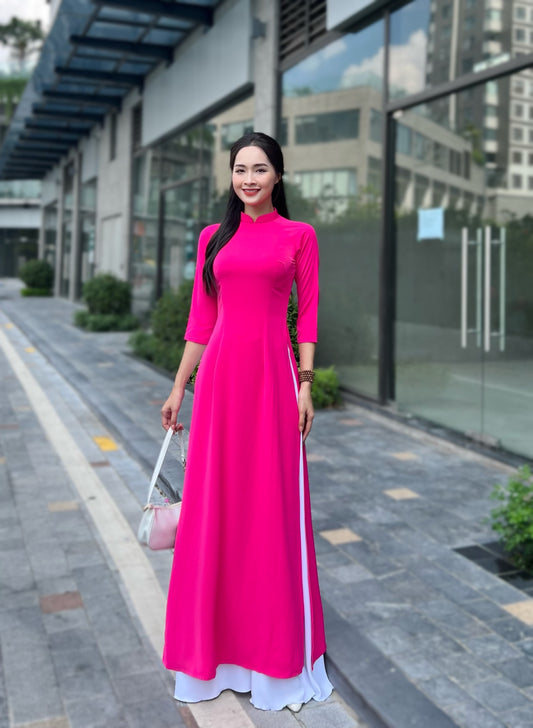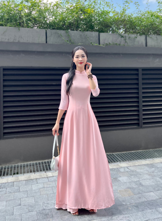 Luxurious Pink Women's Ao Dai - Traditional Collar, Silk Fabric | BA154