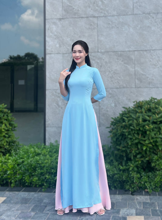 Light Pink Women's Ao Dai - High Quality Silk, Round Neck | BA152