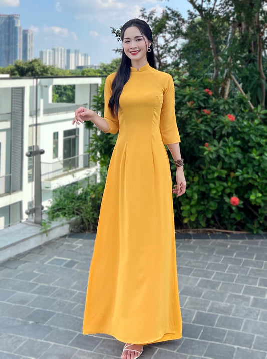 Luxurious Yellow Ao Dai for Women, Traditional Collar, Half Sleeves | BA179